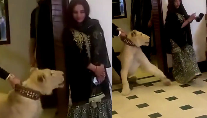 اس سے قبل حریم شاہ نے انسٹاگرام اکاؤنٹ پر ایک ویڈیو شیئر کی تھی جس میں کالے لباس میں ملبوس حریم شاہ موبائل میں ہاتھ پکڑے کھڑی ہیں ایسے میں ایک شیر ان کے پاس آنے کی کوشش کرتا ہے۔