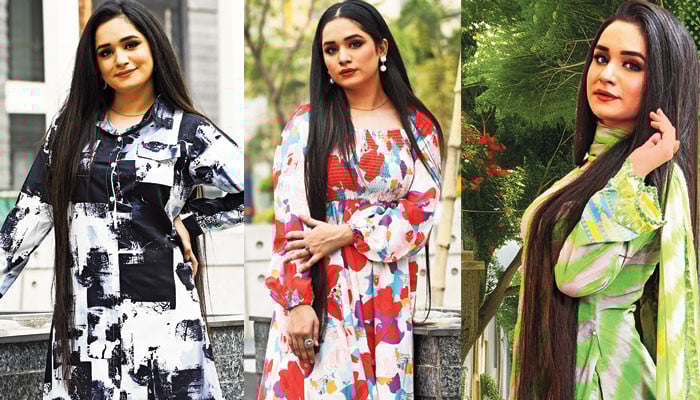 سفید زمین پرملٹی شیڈڈ پتّوں کی ہم آمیزی لیے پرنٹ نے لباس کو انتہائی جاذبِ نظر بنا دیا ہے، تو نیلے کے ہلکے، گہرے شیڈز سے مرصّع سادہ سا پہناوا بھی موسم کی مناسبت سے ایک نہایت ہی دل آویز سا انتخاب ہے۔ حاصل یہ کہ بعض اوقات چھوٹے چھوٹے عناصر بھی جذباتی و ذہنی صحت پر گہرا اثر ڈال سکتے ہیں، اگر اُن میں مثبت توانائی ہو تو… اور پھر انسان اُمید و سُکون کی یہی ڈور تھام کے، زندگی کی تھکا دینے والی دوڑ میں بھی بآسانی حصّہ لے سکتا ہے۔