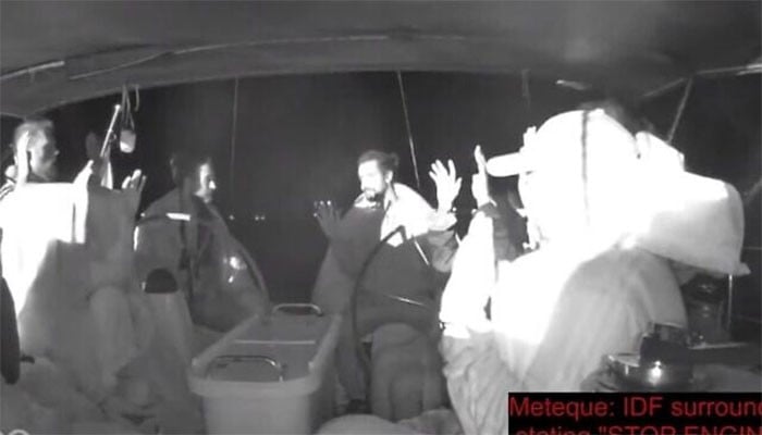 سوئیڈش ماحولیاتی کارکن گریٹا تُھنبرگ سمیت 200 سے زائد کارکن گرفتار کرلیے گئے، اسرائیلی فورسز نے کشتیوں کا مواصلاتی نظام اور براہ راست ویڈیو نشریات جام کر دیں، جنگ زدہ علاقے سے تقریباً 70 ناٹیکل میل دوری پر اسرائیلی بحریہ نے فلوٹیلا کا گھیراؤ کیا۔