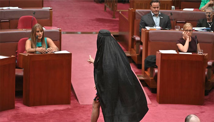 انتہا پسند سینیٹر پالین ہینسن نے حال ہی میں پارلیمنٹ میں برقعہ پہن کر اس وقت ہنگامہ برپا کیا تھا، جب عوامی مقامات پر برقع پر پابندی کے لیے ان کا بل مسترد کردیا گیا، جس کے بعد انہوں نے احتجاجاً پارلیمنٹ کے اجلاس میں برقعہ پہن کر شرکت کی۔
