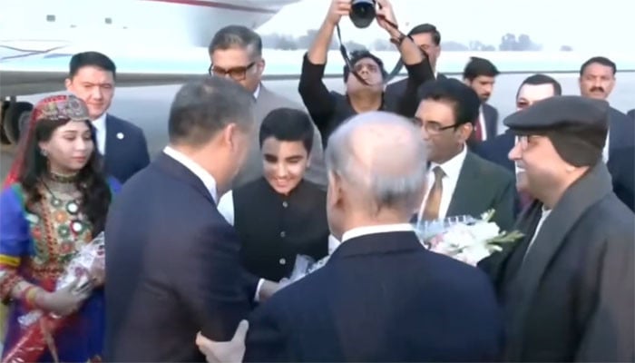 وزیر اعظم شہباز شریف نے گرمجوشی سے مہمان صدر کا استقبال کیا۔