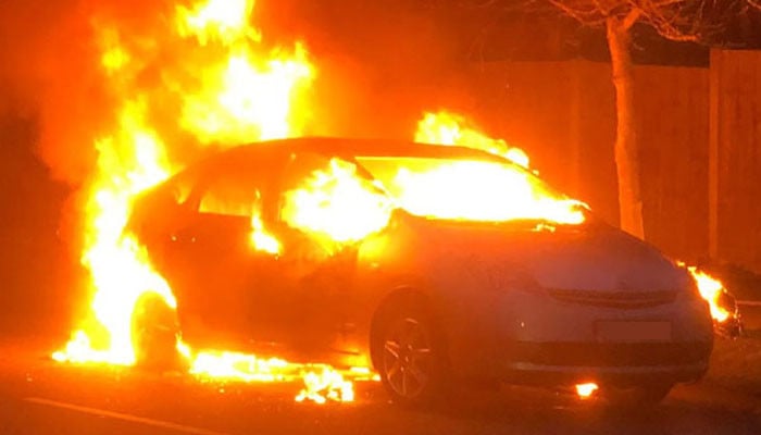 پولیس کا بتانا ہے کہ گاڑی میں موجود پولیس اہلکاروں نے اپنی مدد آپ کے تحت آگ پر قابو پایا۔