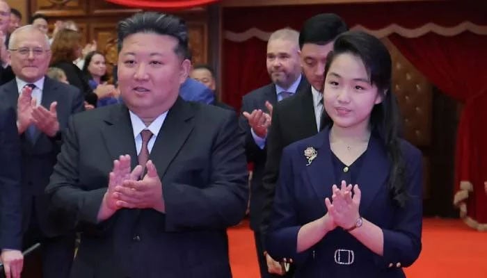 شمالی کوریا کے رہنما کِم جونگ اُن کی بیٹی جو اَے نے پہلی بار عوامی طور پر ریاستی مقبرے کُمسوسان پیلس آف دی سن کا دورہ کیا ہے۔