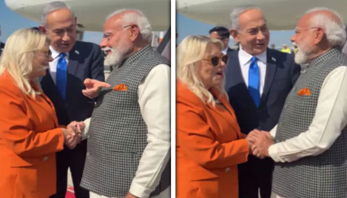 اسرائیلی وزیرِ اعظم اور ان کی اہلیہ نے ہوائی اڈے پر ذاتی طور پر استقبال کیا، اس موقع پر گارڈ آف آنر بھی پیش کیا گیا۔