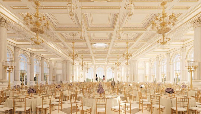 رپورٹس کے مطابق تقریباً 90,000 اسکوائر فٹ پر مشتمل بال روم منصوبہ اس وقت تک معطل رہے گا جب تک مقدمہ عدالت میں زیرِ سماعت ہے۔