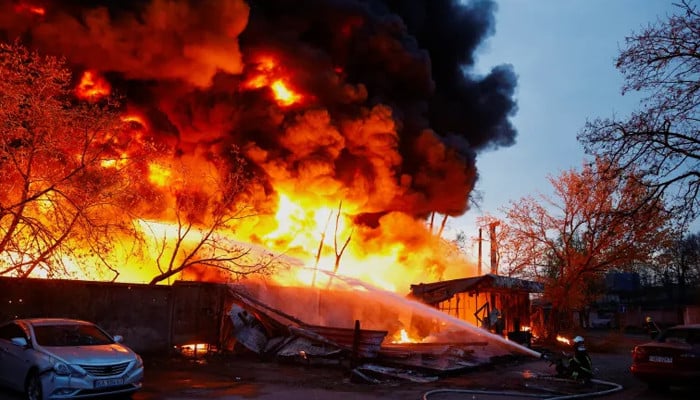 حکام نے کہا ہے کہ یوکرینی ڈرون حملے کے باعث توآپسے کے علاقے میں آگ بھڑک اٹھی۔