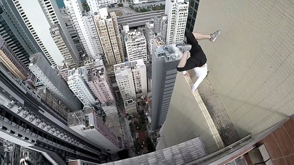 ویڈیو میں نظر آنے والے اس چینی نوجوان کو ہی دیکھ لیں جو کرتب بازی کیلئے سیکڑوں فٹ بلند عمارت کے بالکل سر پر پہنچ گیا ہے۔