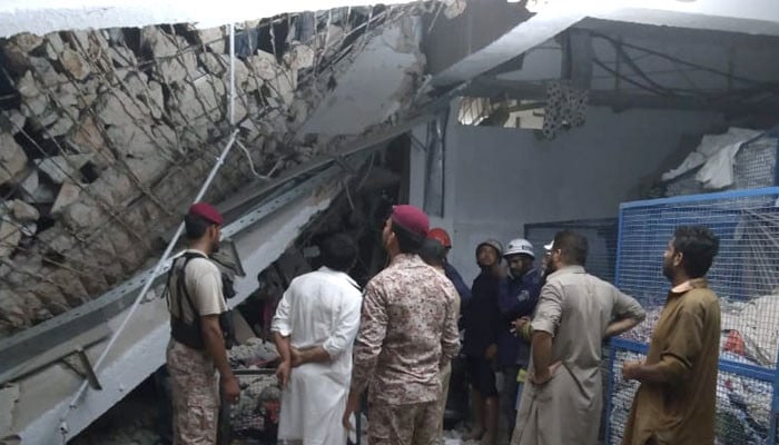 رات گئے کراچی ایکسپورٹ پراسیسنگ زون میں بریک فیل کنٹینر کی ٹکر سے فیکٹری کی چھت گر گئی تھی۔
