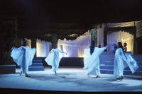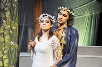 audiences right to this day. The NAPA team worked successfully to make the play credible and relevant for a local audience. The theme of love triumphing against all odds is, of course, a universal one, as is the idea of unrequited love and false pride. And while the human realm of the ruler Tabrez might seem a bit stilted at times, it is the fairy realm that made us eager to suspend disbelief and embrace its whimsical enchantment. The sets were simple yet effective. A few key backdrops were used to create a palatial residence, a theatre and the dark, deep forest where all the drama unfolds. Clad in filmy, shimmery whites or rich, jewel hues, the fairy folk were imaginatively costumed, adding to the overall impact. The bold body painting adorning the male fairies was especially effective. Khalid Ahmad's dialogue was imaginative and witty, flowing naturally from the lips of his characters, formal and flowery, irreverent and hilarious or impassioned and eloquent as the scene required. The NAPA training is now beginning to show as all the members of the team turned in a good performance. Aimen Tariq was regal yet vulnerable as the fairy queen Gulnar while Mustafa Afridi presented an imposing, slightly menacing Gulfam, king of the fairies. But it was Mohsin Ali Shah as Puck who stole the show with his sprightly moves and deft physical gestures. The quick rolls and nimble leaps conveyed the impishness and love of tomfoolery that defines this special servant of the king. Tanveer Abbas, playing the buffoonish actor Painda (Nick Bottom in the original) was also an inspired bit of casting as the actor seemed to have effortlessly slipped into the part which was tailor-made for him. It is the bumbling Painda onto whom Puck affixes an ass's head and then causes Gulnar to fall madly in love with this hideous caricature. For once, the slapstick element of the play which was as always lapped up by the audience, was not forced, since this is after all a farce. The physical comedy was spontaneous and well executed and the actors seemed to enjoy camaraderie if not chemistry. They effectively bounced their lines off each other, managing to cover up little slips with extempore quips. Another impressive feature of the production should have been the music and live singing that the actors break into. Since songs and music are an integral part of Shakespearean comedies, this element was important. However, the taped music, which accompanied the singing, made it less effective, especially since the sound quality of the recording was not too impressive. Considering the musical heavyweights that NAPA was fortunate to include, the compositions were hardly, memorable. In fact, some of the background music was reminiscent of 1980s PTV plays. A few minor caveats aside, this is one NAPA production that the audiences should be flocking to see. The magical sprites of the forest are reason enough for that.