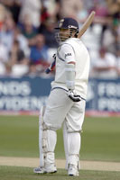 exciting sights in cricket than watching Sachin Tendulkar bat at During the second day of the second Test against England at Trent Bridge, Sachin Tendulkar when he scored his 25th run became the third batsman to score 11,000 runs in Test cricket. He has also scored a world record of 37 Test centuries and also 43 half-centuries. West Indies captain Brian Lara (11,953) and former Australian captain Allan Border (11,174) are the other two players to have reached the milestone while Steve Waugh and Sunil Gavaskar have also scored more than 10,000 Test runs. Tendulkar has a better batting average of 55.05 as compared to Border's (51.00) and Lara's (54.04). Tendulkar also holds the record of most runs in One-day Internationals, having scored 15,051. He is also the highest century-maker in limited-over internationals with 41 hundreds in 388 appearances at this level. Tendulkar 34, with no signs of retirement at the moment, must be looking to overtake Border and the world record of Brian Lara that would complete a clean sweep of batting records for Tendulkar, who is the leading century maker in Tests and One-day Internationals, as well as the leading run scorer in limited-overs internationals. He is also close to completing 100 catches in Tests. So far he has held 92 catches and could complete this 'century' in the ongoing three-match series against England. Sachin Ramesh Tendulkar made his Test debut against Pakistan at Karachi in November 1989 and became India's youngest Test player at the age of 16. He scored his maiden Test hundred at the age of 17, against England at Old Trafford. He was named among Wisden's Five Cricketers of the Year in 1997. He also made his One-day International debut at the age of 16 against Pakistan in 1989. In 1996-97 he was appointed as the captain of the Indian side, making him the second youngest captain in the history of Indian cricket after Mansur Ali Khan Pataudi who was named captain at the age of 21. Tendulkar, regarded among the premier batsmen in the world in the last decade, is ranked second in both the all-time Test and one-day lists prepared by Wisden, behind Australia's Don Bradman and West Indies' Viv Richards, respectively. In batting, he has reached a stage that others can only dream of. He has destroyed practically every bowling attack in the world. India's batting has revolved around Tendulkar for more than a decade. So much so the critics have often labelled India a one-batsman team, especially on tours. Beside his extraordinary talent, courage and consistency have been the main virtues of Tendulkar who has made batting glamorous and entertaining without sacrificing solidity. He is also generally considered to have a near-perfect balance between aggression and defense. Tendulkar took 19 Tests to get his first 1000 runs, but since then the aggregate has been increasing with a rapid rate. He took nine Tests each twice to go from 4000 to 5000 and from 5000 to 6000. But his last 1000 runs have come in 17 Tests. Sachin's overall average is 55.05 -- even against Australia his average is 53.11, but surprisingly against Pakistan and South Africa his performance is quiet below average, that is 39.91 and 36.42 respectively. Tendulkar has scored 1000 runs against every major team but against Pakistan he failed to reach the four figure marks after playing 16 Tests against the arch-rivals. Tendulkar has suffered a series of wear and tear injuries in the last few years and recovered from a long-term tennis elbow injury to play against Pakistan last year. High expectations from the millions of fans who do not accept anything less than a century from him the build-up puts a lot of pressure on the master batsman. No other player suffers so much from the pressure of expectations like that. He perhaps puts too much pressure on himself because he feels he has to win big matches and prove his critics wrong. With age on his side, this man is set out to be the highest run-getter in the history of world cricket. Sachin Tendulkar, known as 'The Little Master', has served two unsuccessful terms as India captain, the first aged 23 in 1996 before being axed 17 months later after his batting suffered. He was re-appointed in 1999, but stood down after a 0-3 Test series rout in Australia the following year. SACHIN