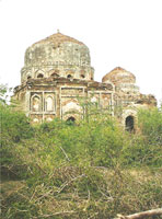 of Mir Walia lay tombstones of Mohammad Khan Talpur and Fateh Khan Apart from the destroyed canopies, the cemeteries contains many gravestones of ordinary people and the servants of the Talpurs carrying inscriptions and are decorated with floral and geometric designs. Some 200 metres south of graveyard of Mir Abdullah lays a necropolis of Syed Ahmed Shah. He was the general of Mir Tharo Khan's army. This graveyard contains gravestones of the soldiers of Mir Tharo Khan's army. Mir Tharo Khan Talpur was the founder of Manakani Kingdom and established his capital at Ketyan-Jo- Kote on the left bank of Puran River in Badin. Ketyan-Jo-Kote or Ketun served as first capital of Manakani Talpurs. It was a centre of all cultural and political activities. Mir Tharo Khan and his brother Mir Allah Yar Khan II resided in this town and their palaces dominated the city. Apart from them, the palaces of Mir Bagho Khan, Mir Abdullah Khan, Mir Walia Khan, Mir Ghulam Hyder and Mir Ali Murad also dotted the landscape of Ketun town. Mir Tharo Khan Talpur was a shrewd and liberal ruler. During his rule, peace and prosperity prevailed in the territory. According to Mir Mehboob Ali, primary teacher in Tando Bagho, Mir Tharo Khan engaged in the battle with rulers of Hyderabad over a minor issue. This battle took place between Shahdadanis rulers of Hyderabad (descendents of Mir Shahdad Khan Talpur) and Mankanis rulers of Badin (descendants of Mir Manik Khan Talpur) in 1803 A.D. The battle started after scuffle between the Kardars (revenue collectors) of the Mir Tharo Khan Talpur and Mir Ghulam Ali Khan (1802-1811), a ruler of Hyderabad which resulted in some casualties. In that fight Kardar and few farmars of Mir Tharo Khan were wounded and later on succumbed to their injuries. Mir Tharo Khan vowed to take revenge of his people. Meantime, news reached to Hyderabad that Mir Tharo Khan was collecting troops and planning to attack Hyderabad. Mir Ghulam Ali Khan Talpur (1802-1812) also prepared for battle and assigned his nephew Mir Sobdar Khan Talpur, son of Mir Fateh Ali Khan Talpur, to lead the Talpur army. Mir Sobdar Khan Talpur along with his army marched towards Badin. Syed Ahmed Khan was the general of Mir Tharo Khan's army. Both armies in the battle ground near Guni fought severely for five days. Mir Tharo Khan was taken prisoner and Manakanis lost the battle Mir Tharo Khan was taken to Hyderabad where he was presented before Mir Ghulam Ali Khan. This battle was known as Wal Wari Jang (Battle of Wal) took place in 1803 A.D claiming many lives from both sides. According to the locals, 410 soldiers of Mir Ghulam Ali's army and 300 soldiers of Mir Tharo Khan's army died in this battle. Mir Tharo Khan was not put in jail, rather he was greatly honoured. He stayed in the palace of Mir Ghulam Ali. After some time he was allowed to go to his capital, Ketun. After his return from Hyderabad, Mir Tharo Khan felt dejected. After some time, he made his son Mir Ali Murad a ruler of his kingdom. Mir Ali Murad shifted his capital from Ketun to Mirpurkhas in 1806. Mir Tharo Khan also abandoned Ketun and lived in Mirpurkhas. Ketun, the first capital of Manakani Talpurs lost its grandeur. Mir Tharo Khan died in 1829 leaving behind two sons Mir Ali Murad Khan and Ghulam Hyder. He was buried in Chitori necropolis in Mirpurkhas. At present, Ketun is in ruins, with only few tombs withstanding against the vagaries of weather. Similarly, the graveyards of Mir Abdullah and Syed Ahmed Shah are also victim of neglect. Unfortunately, these escape the attention of both the descendents of buried dignitaries and concerned authorities who are responsible for preserving the crumbling heritage.
