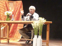 under-privileged. Another set of three plays by Chughtai were performed by the troupe on day two, Dec 2 at the same venue. Taking the form of monologues — Manoj Pahwa in Amar Bel, Loveleen Mishra in Nanni ki Nani and Seema Pahwa in Chooee Muee — the three actors focused on human relationships, tackling issues such as sanctity of marriage, irony in aristocracy and the life of rural women at the turn of the 20th century. On both days, the actors appeared as narrators and characters, presenting the stories word for word, keeping the flavour and flow of the language intact. This lauded work reverberates the class in Chughtai’s writings that is about everything humane with compassion —yet she became one of subcontinent’s most controversial writers. The show reaffirmed that storytelling is the purest form of communication, which has over the years become victim to the frenzy projected on the electronic media, in cinema and generally to the hectic lifestyle. In the role of a director, the white-haired Naseeruddin Shah appeared on stage at the rise of the curtain before an excited audience that gave him a standing ovation, to introduce the cast. His brief speech was interspersed with appreciation of Lahori hospitality and warmth. It was evident that the Shahs enjoyed the event as much as the Lahori crowd — that on the insistence of the Faiz Ghar, represented on stage by Adeel Hashmi, he nodded to the idea of another visit next year. And why not? The audience comprised the educated, English-speaking who’s who of the city, varying from rights activists to educationists to literati to the few initiated. They were uninhibited in displaying their hunger for theatre — for them, it was also a rare chance to brush up their rusty Urdu!