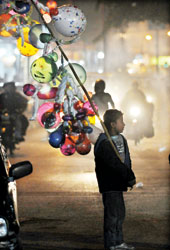 Selling balloons at an age where he can very well play with them. Ejaz, 8, studies in class 3 and has five siblings. He contributes to the family income by selling balloons in the evening and refuses to accept alms.