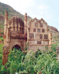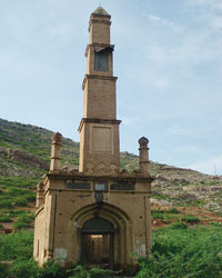 are two lamp chambers Towards the east is located the main structure having central tombs and four entrances one at each side. The tombs have been built over graves of important figures of the time. These graves that are built of rocks cut in different sizes form the main attractive features where a lot of labour must have been put in to carve the stone in such sizes and shapes. The taller tomb has four hexagonal minarets one at each corner provided with slits towards top. The tombs have turned to dark greenish tinge due to time and weather factor. The smaller tomb having flat rounded top has a wall in front with stones slabs engraved in Persian phrases some of which have fallen down and lost. The boundary wall of the graveyard has been completely demolished. One of the main reasons to maintain this graveyard is not only to preserve the history over time but the place is also a hotspot for tourists as it is situated in the vicinity of the Tanda Dam which is famous for having a wildlife park and water reservoir. The graveyard is en-route to the Tanda Dam and has high potential of preserving it to check further deterioration in its present status. The Tanda Dam is famous for its landscape and ecological features such as serving as the staging ground to the migratory birds in winter. Preservation and maintenance of the graveyard will not only preserve the historical heritage but will also serve as tourist site as most of tourists are not aware of its history and existence. This heritage remains unnoticed by the visitors who avail recreational resources of the Park and the Reservoir in the nearby area. Such heritage buildings need to be preserved through time which will not only help in boosting up the local economy through tourism but will also serve as exposure to the locality. The