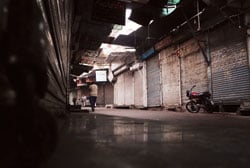 shutters go down, the markets give a deserted look. Passersby in such