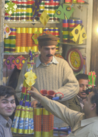 open because the electricity would play peek a boo every five seconds. A little older, I would sometimes (rarely) try my hand at kite flying with my younger cousin. To be honest, a hot summer day with the sound of a lonely yellow kite fluttering in the bright blue sky was kind of relaxing; I had associated this feeling of calmness, as if one was playing with the wind. Then there was the time in my early twenties when one of my closest friend would have a night basant party at his place every year. So the whole night would be spent meeting people, talking, laughing, smoking away, fixing the lights, hooking up the stereo system, enjoying other people flying kites, eating delicious goodies his mother would make, sleeping at dawn and waking up the other morning. That was fun. If you're asking me if we should still celebrate basant, then yes with a few exceptions. Stop using dangerous chemical materials on the 'dors,' Do something so that motorcyclists don't get injured and stop falling off rooftops and I'll say yes. With all the strange things that keep happening that continue to make our faces grimmer, I still want to see some kid running after a kite, his eyes glowing, his lips smiling. Wouldn't you? --Ali Sultan