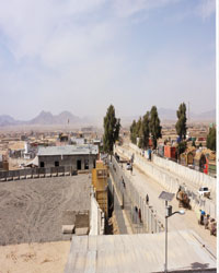 militia fort. A few A lofty gatehouse emblazoned with the words ‘Friendship Gate’ flying three Pakistani flags and a giant image of Mr Jinnah marked the crossing. A marble plaque recorded that the gatehouse was built in 2008. Saif and another officer led me up the stairs to the observation rooms in the gatehouse. On the far side, a couple of dozen Pakistani lorries waited. Afghan Transit Trade, said Saif. The men and the buildings were the same, only they drove on the wrong side of the border. In the background we could see the houses and few trees of Spin Boldak where our lunch was coming from. Unlike our borders with Iran and India, there were no barbed wire fences; only a shallow ditch and a low wall of the earth turned up. There was no frenetic activity as I have seen on the three occasions I crossed into Afghanistan from Torkham. The mad hubbub of people scurrying back and forth with the border guards seeming not the mind them at Torkham, this was a rather quiet crossing. Only a few pre-teenage boys idly trundled their wheelbarrows this way and that. Older men with sacks on their shoulders too casually came and went. A beat up old Suzuki Mehran, that apparently refused to run, was being pushed across the border into Afghanistan. Another equally battered car of the same make and colour followed under its own steam. No one seemed to be checking them for export papers or anything else. No one seemed bothered. In this respect at least, things were quite like Torkham. Even as we reached Friendship Gate, I had noticed that the way through it was closed and barricaded. I presumed it being Friday; the officials were taking off for a post-prayer siesta. But then, everyone seemed very much at ease walking around the gatehouse. I must have looked confused and, smart of him, Saifullah solicited the information unasked. Since the Afghans did not accept the Durand Line, they refused to use the gateway preferring to cross over at any old place. That was sound Pushtun logic and the arrangement was respected by both sides. Witnessing this irregular set up at a regular, unrecognised border then was the highpoint of this visit. Since local people casually crossed the border, I asked Saif if I could hop over and grab a ride to Kandahar. Only if I was suicidal, said he. But if I came with a visa duly stamped in my passport, he could hook me up with a native Kandahar man who could be my guide. That would not be a bad idea. Moreover, from the walls of Chaman fort I had earlier seen the snow-capped peak of Khwaja Amran and Saif had mentioned the shrine on the summit. Having checked out some other mountain-top shrines, I was intrigued. Could this too be an ancient Dharti Mata shrine, converted to suit Muslim sensibilities? The next trip out then will be to climb Khwaja Amran before the snow melts and then cross the border to Kandahar. I know it will never be like Herat, a city to die for. But even dusty old Kandahar will, I am sure, be every bit worth it. Oh yes, the meat-eating orgy turned out just fine. After we were finished, I having polished off all the barbecued ribs that Saif piled on my plate, I told my friend how long I had been a vegetarian. But vegetarianism is something few Pushtuns approve of and Colonel Saifullah Khattak was suitably appalled. A 10-day