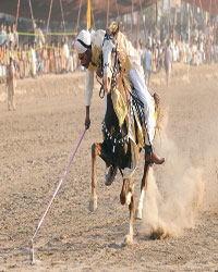 points to a nearby crowded And the venue was a display point for fancy/ornamental-imported birds including pheasants, expensive pigeons, rare breeds of peacocks, and the most-viewed miniature house. The cheerful Zain, who took on himself the role of a guide, had come here for the third consecutive day, mainly to have a complimentary ride on this horse. “These fully-grown horses may have an average height between two to two-and-a-half feet and may cost between three to five lakhs,” says Mian Naveed-ur-Rehman, the representative of Lyallpur Fancy Birds Society. He tells the miniature horse brought to the event belongs to a large textile group, which breeds them at its farms. “None of the species present here is for sale,” he says. The display has been put up on the request of the university to add colour to the event. Naveed says the Wild Life Department officials worry them needlessly particularly during the inland movement of these species. “We have asked the university to endorse us to avoid this irritation as we may move these birds to other parts of the country for research purposes. If this does not happen the society may refuse to display these birds next time the university requests us to do so, he says. “The wildlife officials must go after those who are destroying biodiversity of the country. By importing new species we are in fact adding to it and must be honoured for that.” Tent-pegging and kabaddi contests were the biggest attraction as many watchers gathered on the field, pavilions, boundary walls and some were even hanging by the trees. Every time a rider on the back of a darting horse succeeded in piercing and carrying away a ground target, with the help of a lance, there was deafening roar emanating from all around. Last but not the least was the beauty contest amongst various genres of cattle. None of the participants was less than those seen near Eid-ul-Azha carrying price tags worth hundreds of thousands of rupees per head. It was a treat to watch breeders parading their animals in front of judges and calling them with names like Sapna, Jamalo, Maharani and Lado. Surprisingly weight and size were not the criteria for success. Those boasting symmetric bodies, shiny skins, attractive gaits and postures and mastani akh (enchanting eyes), walked away with prizes while the overweight lot was disqualified right away. “Eh meri dhee aye, koi ehnu dangar naa samjhay (She’s my daughter and no one should take it as a cattle),” were the words of a proud owner that made every attendant of the prize distribution ceremony laugh.