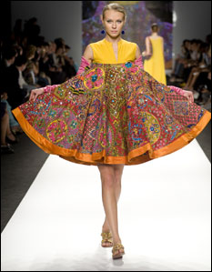 "Between Rizwan, Maheen and myself, we took what we believe is the transition of Pakistani fashion. For me, the core of my collection lay in modern Pakistan. It played with the length of the Balochi kurta, truck motifs, phundanas and even naalaas: things that we are so used to seeing everyday, everywhere. I gave the models kherris (colourful leather sandals indigenous to Punjab) to wear on their feet and I can proudly say that these kherris have officially made it to Trends for 2010, as have my round bags and Rizwan's turbans."
