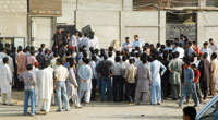 daily wage labourers, however, go home empty-handed. "These are terrible times for us because people are not renovating their homes," said Ismail, who earns mere Rs250 a day if he is lucky to find work. "We never use to wait this long. But there is no other choice. Masonry is all we know." The daily wagers Kolachi spoke to are having difficulty in coming to terms with the reality of job market after enjoying the economic boom years of 2002-06. 52-year-old Abdul Ghafoor who is illiterate but seems well aware of political happenings told Kolachi, "Work is hard to find since the new government took over (in 2008), and terrorist attacks and the corrupt government are responsible for our problems." But economists say it is obvious for people to stop spending on home repair when economic growth has slowed down. The earnings of the companies where the dwellers of Karachi work have plunged across the board. Instead of getting bonuses, they are being laid off. Personal loans and cheap bank credit are not available anymore. A double digit rise in inflation during the past two years has also constraint the household budgets. After food, rent, educational and medical expenses little is left to be spent for any renovation. A slump in construction activity is also contributing to the miseries of daily wage labourers. Hardly any new apartment project has been announced this year in Karachi. With risk aversive banks reluctant to go into mortgage finance and the only pubic house finance provider - House Building Finance Corporation (HBFC) - crumbling under losses, there are no chances of recovery in the short run. Plight of the daily wagers does not end here. There are thousands of factories in Karachi that hire workers through private contractors. The benefit for not bringing this part of workforce on company payroll is higher profit. Ashfaque Hasan, former finance advisor to the government, said factory owners hire daily wagers to avoid contributing to mandatory welfare fund for workers. "Any establishment with more than 10 workers is categorized as large scale manufacturer. This means an owner has to contribute to social security cover like EOBI." The government officials responsible for checking hiring procedures often collude with factory owners, he said, making it hard to curb this illegal practice. "There is no doubt that when it comes to downsizing, the daily wagers are the first one to be sacked." Most of the country's manufacturing base is comprised of export-based textile, an industry which has been battered by global recession. There are no firm figures of how many families have been affected. But estimates are worrisome. Pakistan Institute of Labour Education and Research (PILER) Executive Director Karamat Ali told Kolachi that about 80 per cent of the factory workforce is employed through private contractors. "It is the easiest way to stay away from all legal obligations," he said. "Contractual workers can not form union. They can not bargain. They are in no position to demand paid leaves as allowed by law." In most of the factories, he said, even the minimum wage of Rs6,000 is not being paid to the permanent employees. "Who monitors the government directive of minimum wage is implemented? There is no one." Since daily wagers do not come under the prevalent labour laws, their rate of salaries is determined by the demand and supply situation in the market, said Haris Gazdar, director of the Collective for Social Science Research. With tens of thousands of people wandering on streets for jobs, it is not hard to imagine the repercussions of this excess supply on wages. The only social security cover these people have is through government schemes like Benazir Income Support Program, which is targeted at the poorest. Even that is not working. Abdul Ghafoor, who comes to Burns Road from Sher Shah, is not able to buy food. He is no beggar and for the first he has joined that despicable class. "I line up with others outside Sailani Welfare Trust or Edhi's centre for free meal centres."