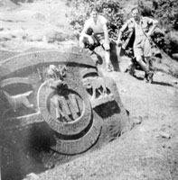 happy to send a photograph for your records if you wish." I concluded. It was not long before I received the following reply from the Yorkshire Regiment Museum: "Our records state that the 1st Battalion The West Yorkshire Regiment moved from Lahore to Rawalpindi in 1907 and remained in the (Murree) area until it returned to England in 1911. We were not aware of it and cannot be sure what the memorial stone in Murree commemorates. It may be in memory of the men who died there, or maybe it was simply carved to record the Battalion's three years in the area. Thank you for your interest in it, and we would be delighted to receive a photograph of it (for our museum and newsletter) if this can be arranged." The museum also e-mailed the battalion's 'Service Digest' dated 1907-1911. The several-paged document gave details of its general activities in Murree Hills. According to its history, the 1st Battalion (XIV) West Yorkshire Regiment was originally raised in 1685 by Sir Edward Hale. It was formerly known as the 14th Regiment of Foot and also as the Bedfordshire Regiment of Foot and later as the 14th Buckinghamshire. In 1759, when stationed at Windsor, it was granted royal permission to wear the White Horse of Hanover. From 1807 to 1831 it served in India and subsequently was granted the badge of the Royal Tiger superscribed with 'India'. In 1876, the Prince of Wales, later Edward VII, presented new Colours to the 1st Battalion and conferred on the regiment the title 'The Prince of Wales's Own'. Five years later, in 1881 the 14th was honoured and named 'The West Yorkshire Regiment'. The 1st Battalion (XIV) was stationed in Kuldana, Murree from 1907 to 1911. It was inspected by General W. Kitchener in Lahore on its arrival in India. In Murree it remained mostly engaged in infantry and hill manoeuvres and was also part of the Mohmand Field Force. Afterwards, it participated in both World Wars and won many battle honours. In 1958, the West Yorkshire Regiment (The Prince of Wales's Own) and the East Yorkshire Regiment (The Duke of York's Own) were amalgamated to form the Prince of Wales's Own Regiment of Yorkshire whose regimental headquarter and museum is located at York in England which is open to general public. Having despatched the photograph to the museum and feeling very pleased with my findings I decided to upload and share the information on the Internet on a personal website. Within days, I had received many interesting e-mails and laudatory comments from around the world. But my stint as the local Indiana Jones was about to end soon! I received a new mail that both surprised and amused me. The writer, Jesse Bridge, was an 82 year old British Army veteran who had served in Murree in 1940s. He wrote: "Somebody has claimed to 'recently discover' a stone memorial near Kaldana Camp on this website. Let me inform this gentleman that I saw this British regimental memorial carved on the large stone boulder below Kaldana Camp when I served there in 1945! There were two more nearby different regiments I think." During our subsequent e-mail exchange Mr. Jesse Bridge and I became good friends and he was polite enough not chafe me again. He had made his point. So much for my brief stint as the local explorer! Meanwhile, I looked for the two other memorials in the vicinity as indicated by him but unfortunately with no luck. He even sent a photograph of the monument as proof. Taken in 1945, it shows him posing next to the rock with a friend. The engraving has fairly diminished in appearance due to climatic wear over the years, however in the old photo it appears remarkably intact. On the day he took that memorable photo Jesse encountered some monkeys too. As he recalls: "The troop of, I think, baboons (sic) was well downhill from Kaldana Camp near the memorial. After taking the photo as I turned a corner I saw them, and they saw me. We all froze still. Slowly I got my camera out of its case. It was a folding one. As it became fully extended and the bellows straightened, there was the usual slight click. That was it. Off they all went at high speed. I never did get another chance. As I said to family and friends back in Britain, I went to India but never saw an elephant, nor a snake." One inspiring comment came from Walter Reeve, whose father was a soldier and who himself had been raised in British India. While lamenting the gradual decline of history in our part of the world and referring in particular to the few surviving regimental monuments in the Khyber Pass he stated: "I hope these poignant remnants of the Raj are still there, for they are a memorial to the thousands of ordinary British troops who, far from home, sweated to keep the Empire intact. The discussion as to the rights and wrongs of our presence in India has no place here. The lowly soldier gained nothing from the Empire. He endured the heat, suffered the illnesses and faced the danger for a pittance; and very often died in some remote place for a country that held him in low regard. Not for him the riches of the traders or the high society of the officer class. His home was the barracks, his family the regiment and drink his solace. Hundreds died for their King and Country in minor conflicts that would not even rate a mention in an English newspaper. Their memorial would be these imposing carvings standing out high over the harsh surroundings in this far off corner of the world." The West Yorkshire Regiment's stone has stood and watched over the hill for nearly a century. Surely, the list of names of its 'discoverers' (Jesse and myself included) and other people associated with it somehow or the other, must be very long! But one thing is for certain, all those who came here, for whatever purpose would have paused to marvel at the rock and they would have been reminded of the past. Standing before it, one can easily drift into nostalgia and imagine the soldiers of a bygone era performing their regimental drill to the tune of a bagpiper 