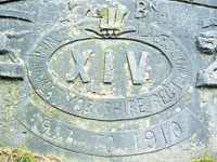 mess each were left intact until 1947, and still stand. Recently, while hiking in the woods around Kuldana, where I reside in summer, I came across a curious stone monument of the West Yorkshire Regiment. Bent on unravelling the actual story behind the memorial, on returning home I searched the Internet and came across a website of the Yorkshire Regiment Museum in United Kingdom and decided to drop them an e-mail. I wrote: "I am spending my holidays in Murree, a hill station in the Punjab province of Pakistan (formerly British India before 1947). While exploring the forests adjoining Kuldana I came across a large rock monument with a regimental crest and inscription of the 'Prince of Wales's Own (XIV) West Yorkshire Regt.' dated 1907-1910. The regimental insignia, the 'Nes Aspera Terrant' motto with an image of a horse and '1807-1831 India' with an image of a tiger are prominently visible. However the battalion's name '1st Bn' is now almost illegible. On top there is a faded inscription that appears to be 'the knaves mire'. Below it 'XIV' is inscribed in the centre. This imposing monument is located in a secluded area in the woods north of Kuldana in the Murree Hills. From a height the stone commands a fine view of the surroundings. There is a clearing in front of it with a raised platform a little further which appears to be the dais of a parade-ground or a playground from almost a hundred years ago. I have done a web search