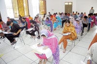 several expatriate Pakistani students who flew back home to NTS is being made compulsory for admissions in graduation and higher degrees as well as scholarships as part of Higher Education Commission's (HEC) scheme of educational reforms. The NTS analyses 'the basic knowledge and understanding of a student' and holds promises of 'raising the quality of education'. The NTS and GAT (Graduate Assessment Test) are held four times every year. This year two NTS and one GAT test have been held so far. Students have not wholeheartedly accepted the idea of having a testing system for admissions instead of relying only on their examination score. Thousands of students gathered on August 19 for the NTS test. Many of them appeared irritated. Some were annoyed with the overall testing idea and some were at odds with the pattern of the test. "After spending so much money I am here to take the test, which apparently suggests that my F.A. degree has no value and to prove my capability I have to take this test," said Osama who flew to Lahore from Kuwait to take the NTS for admission in BBIT in Punjab University. "The major portion of the test is based on Mathematics and if a student like me is not good in the subject, s/he will flunk it and have no chances of getting admission in a good institute," said Rubina Qazi, another student who came out of the hall depressed because she could not do well. "The test was damn easy but I am not happy with the idea of the NTS. We had been working hard to score well in the final examination but we are required to and now this test, which we just have to pass with 50 per cent marks," said Maryam Yousaf, a F.Sc student. NTS is an initiative of Dr. Atta-ur-Rehman, chairman HEC, to improve the education system of Pakistan. "There is a serious quality problem, people get first-class marks in English but they cannot even write a proper sentence," said Dr.Atta while talking to TNS. "We need to have transparent system which checks the basic understanding of a student." By the introduction of testing services and other reforms, Dr. Atta said, "We have stiffened the criteria for going up the ladder. Our emphasis is not on score but on quality." Commenting on the dissatisfaction expressed by the students, Dr. Atta said, "the idea is not to make students happy. The idea is to produce quality so we are not here in the pleasing business, we must not have smiling students, we want hard working quality students." He was of the opinion that the students must be prepared and if they are keen they should be confident that they can pass it. A large number of students who have failed the NTS test have no future till the next year as admission dates have passed. Dr. Atta said that this was good as poor students were being filtered. "We don't want poor students getting in. Getting PhD degrees and becoming your professors and not knowing even simple basic things is not what we are looking for. So these measures have been taken after extensive consultations with the academic community, a number of vice chancellors and provincial representatives." The NTS is being divided into various portions which evaluate the critical thinking skills, analytical reasoning and performance assessment of candidates with regard to quantitative ability and English Language Skills. About 400 professors from across the country contribute in the making of a test and all get Rs.500 to Rs.1000 in return, according to information provided by Junaid Zia, the Rector of the COMSATS institute in Islamabad. The 100 questions of the test are randomly selected by a computer, a day before the test date, leaving a thin chance of being leaked out, which is a normal custom in Pakistan. Because of the computer checking system the results are declared only after a week and result cards dispatched within the next two days. Of the 53078 students that appeared in test taken on August 19, 102 students scored between 90 and 100 per cent, 20172 between 50 and 59 per cent and 16583 between 60 and 69 per cent, showing rather healthy results. Beside students, many teachers have voiced their concerns against the NTS. "I am totally against the idea as it has created more troubles for students and put them under depression," said a professor of one of the leading institutes of Pakistan. "If the idea is to bring educational reforms, there could be other measures rather than imposing a test which is easy for students with a mathematics background only," said another professor of a leading university. The professor contradicted the claim of HEC that the mathematics portion of the test is of Matriculation level and said it was of B.Sc level. However, professors and faculty members of many universities and colleges approved a test to judge the students' IQ level. Dr. Nighat Khan, dean Kinnaird College Lahore's post-graduate block, was of the view that no one should have problem with the mathematics portion as it is an international practice to judge a student's mathematical capability. A lecturer, not wanting to be named, said that NTS will definitely help in improving the standard of the faculty itself as well, as there are some teachers who do not even know how to calculate 25 per cent of 100. Professor Dr. Muhammad Naeem, Registrar Punjab University, was of the opinion that a uniform test can remove the statistical error by filtering out good students.Though Dr Naeem endorsed NTS, he hinted that the PU was accepting it on experimental basis. He said that by the end of 2008, the PU will establish its own testing service that will replace the NTS and will also provide the service to other universities. It may be mentioned here that at the M.Phil level, the PU has made GAT test compulsory but also takes its own test. "We take another test because GAT does not satisfy our requirements," said Dr. Naeem.