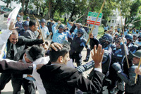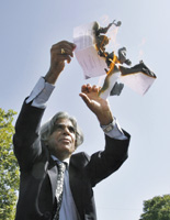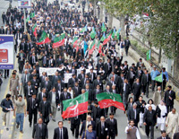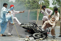 was composed with the artist's photograph from her childhood with slight There is another side of the story too. It appears that, like several other artists, Batool needed a catastrophe to express her creative capabilities. In a paradoxical way, the grim accounts are useful for the politically conscious artists, because these can be utilised to concoct 'serious' art. Whether genuinely felt or merely following the 'pessimistic' possibilities, the acts of doom tend to bring boom into the art world. In the words of Slavoj Zizek, artists and intellectuals of today participate in the 'silent violence', which means that they are part of a system that generates and witnesses the acts of violence, but they do not get actively involved in changing the situation. However, they are keen and content in meagre (and symbolic) acts of defiance. Quoting Jacques Lacan, he described them as someone interested in 'reality' but oblivious to the 'Real'. Along with Lenticular prints and their clearly formed and cleverly conveyed content, five other works included in the exhibition were mixed media paintings on paper executed in photo collage, acrylic and graphite. Like prints, these works also dealt with the political conditions, primarily the riotous reaction of people denouncing the Danish cartoons. Thus the scorched car, exposed lintels in a burnt and deserted building, and blackened walls and doors in her work reminded of the destruction in the city. However, in terms of formal aspect, these works were not as impressive as her Lenticular prints. The manner of assembling the ready-made image, overlapping it with sweeps of paint and introducing pencil lines, hardly looked as exciting or unexpected as her Lenticular prints. Comparing the two kinds of works, one pondered on the position of an artist as a committed image-maker. Even though the content, by and large, remained the same, the disparity between the two types of works produced by a single artist -- the remarkable sophistication of prints did not match with her mixed media pieces -- brought into fore an important issue: is it the medium that creates the message or is the artist responsible for it? No one could answer it satisfactorily, even though it has been addressed by several post-structuralists including Roland Barthes; as such it contains room for speculation, much like the work of Farida Batool. The ninth barsi of Ustad Sadiq Ali Mando, one of the leading players of the clarinet, was observed at the Alhamra last week with a full session of music By Sarwat Ali Some of the leading