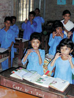 school? Speaking to the principal later, it was learnt that the school had no less than 2,500 girls in its morning session, which consisted of classes 6-10, and 1,250 in the afternoon shift, which consisted of nursery to class 5. There are about 70 staff members. Of course, this wasn't always the case. The government school was adopted by CARE in 1998. At that time, there were a total of 1,100 students, and 10 staff members. The organisation has been able to transform not only the structure of the school, adding more rooms and facilities, but the very essence of it -- so much so that the residents in the surrounding localities have enough faith in the institution to send their daughters there. In fact, so reputed is the