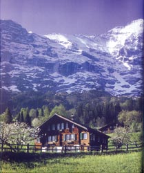 Alps soar into the blue skies of Switzerland creating gushing streams, trout